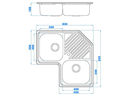 型號(hào):669Y款式:單瀝水板雙盆安裝方式:嵌入式總尺寸:830*830 mm雙盆:340*400*188 mm