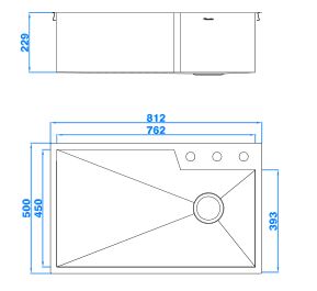 型號:YP1804款式:單盆總尺寸:812*500*229 mm大盆:762*450/393*229mm