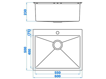 型號:5422款式:單盆安裝方式:嵌入式總尺寸:600*500 mm大盆:550*400*230 mm